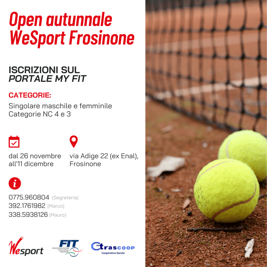 Al via sui nostri storici campi in terra battuta l’Open autunnale WeSport Frosinone riservato alle categorie 3-4.NC.