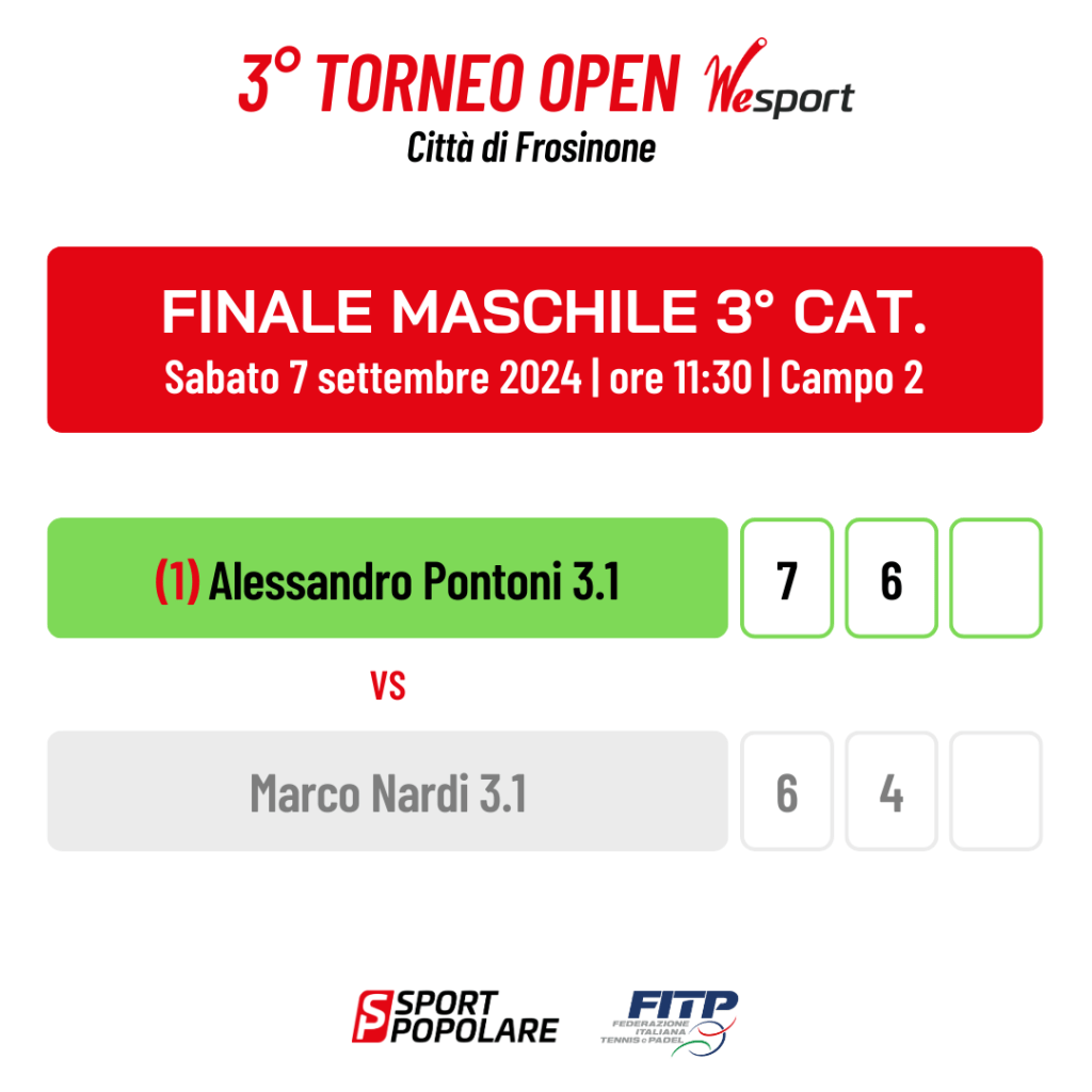 Dal 19 agosto al 5 settembre è in programma la terza edizione del Torneo Open WeSport Città di Frosinone.