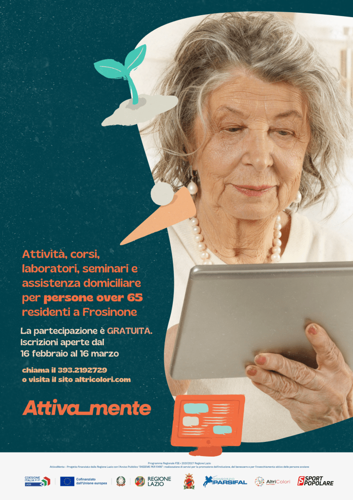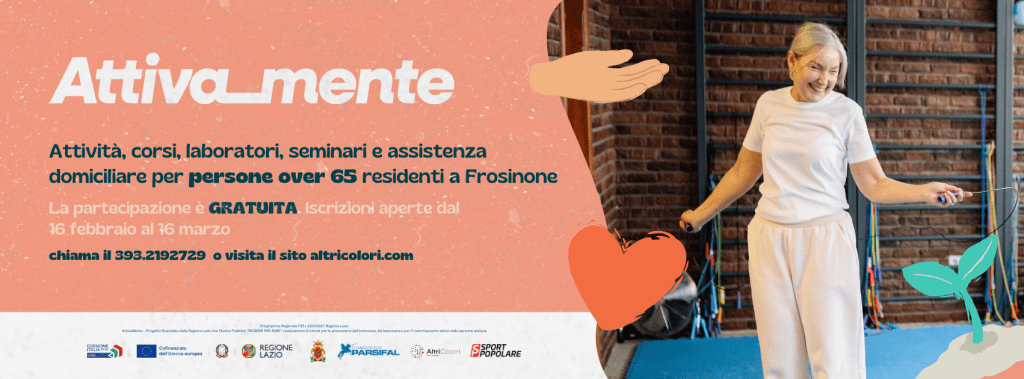 Promuovere il benessere, l’invecchiamento attivo e contrastare l’isolamento sociale delle persone anziane: è questo l’obiettivo di Attiva_mente, il progetto gratuito rivolto agli over 65 residenti nel Comune di Frosinone, per il quale è stato pubblicato il bando di partecipazione. L’iniziativa, finanziata dalla Regione Lazio nell’ambito del Programma Regionale FSE+ 2021/2027, nasce dalla collaborazione tra Altri Colori, Consorzio Parsifal e Sport Popolare, in partenariato con il Comune di Frosinone e una rete di soggetti pubblici e privati.